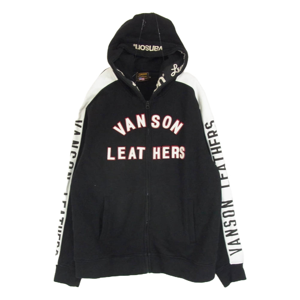 VANSON バンソン LEATHERS ロゴデザイン ジップパーカー フーディー ブラック系 XXL【中古】
