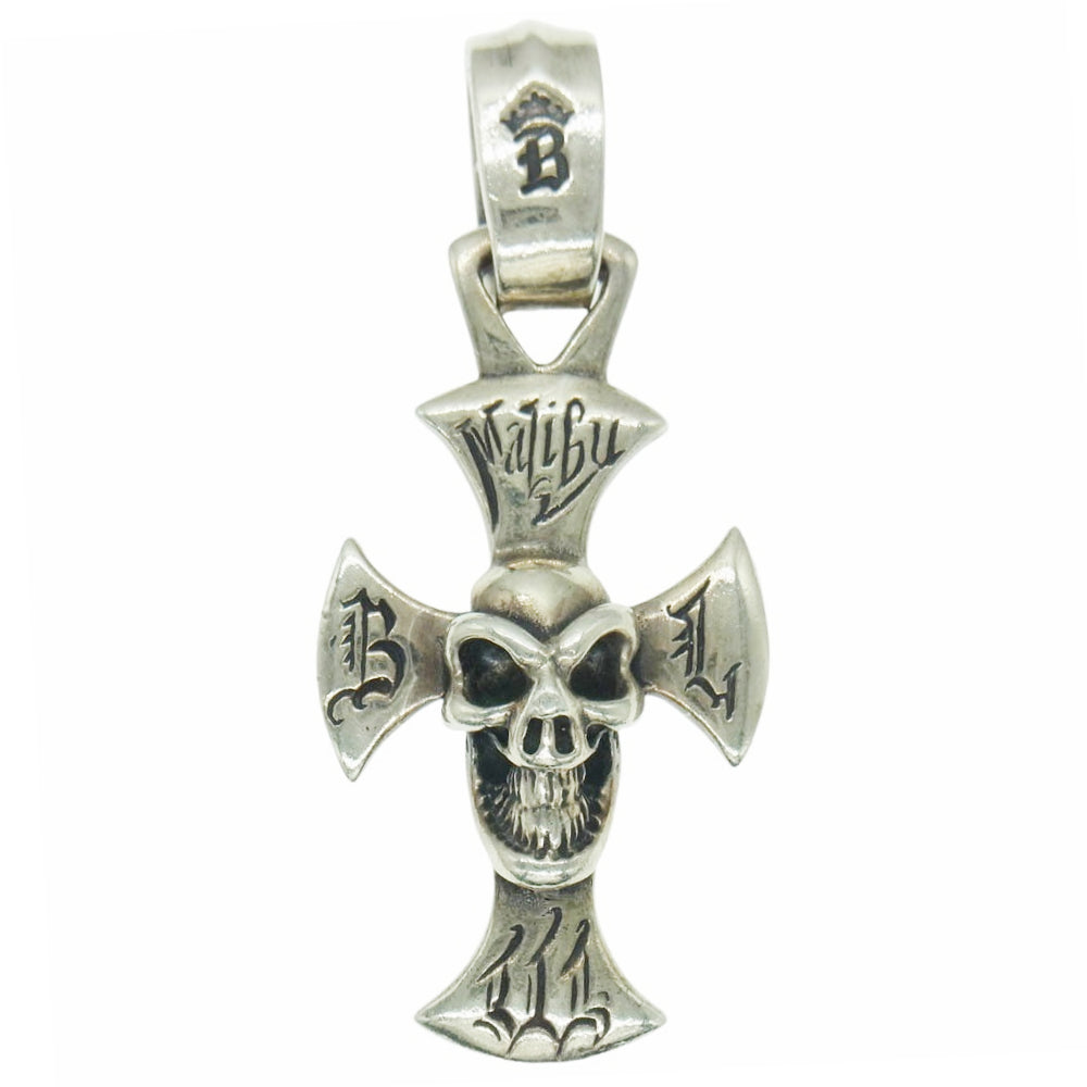BILL WALL LEATHER ビルウォールレザー グッドラックスカル on マリブクロス ラージベイル ペンダントトップ シルバー系【中古】