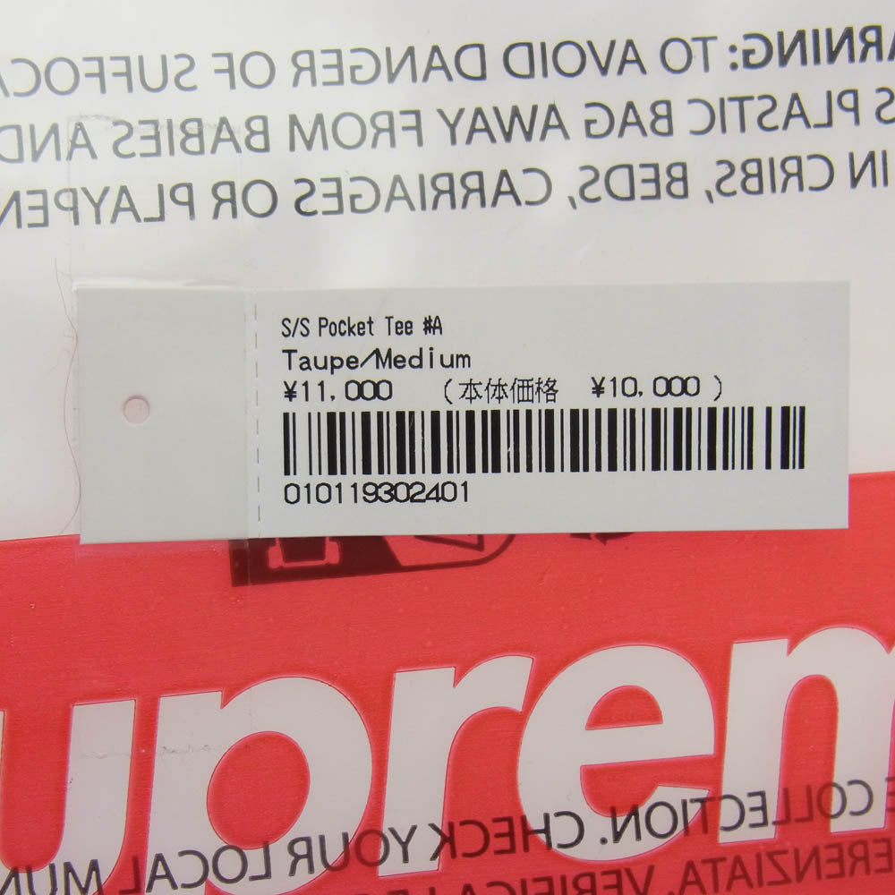 Supreme シュプリーム 23SS S/S Pocket Tee #A Taupe ポケット 刺繍 半袖 Tシャツ ライトブラウン系 M【美品】【中古】