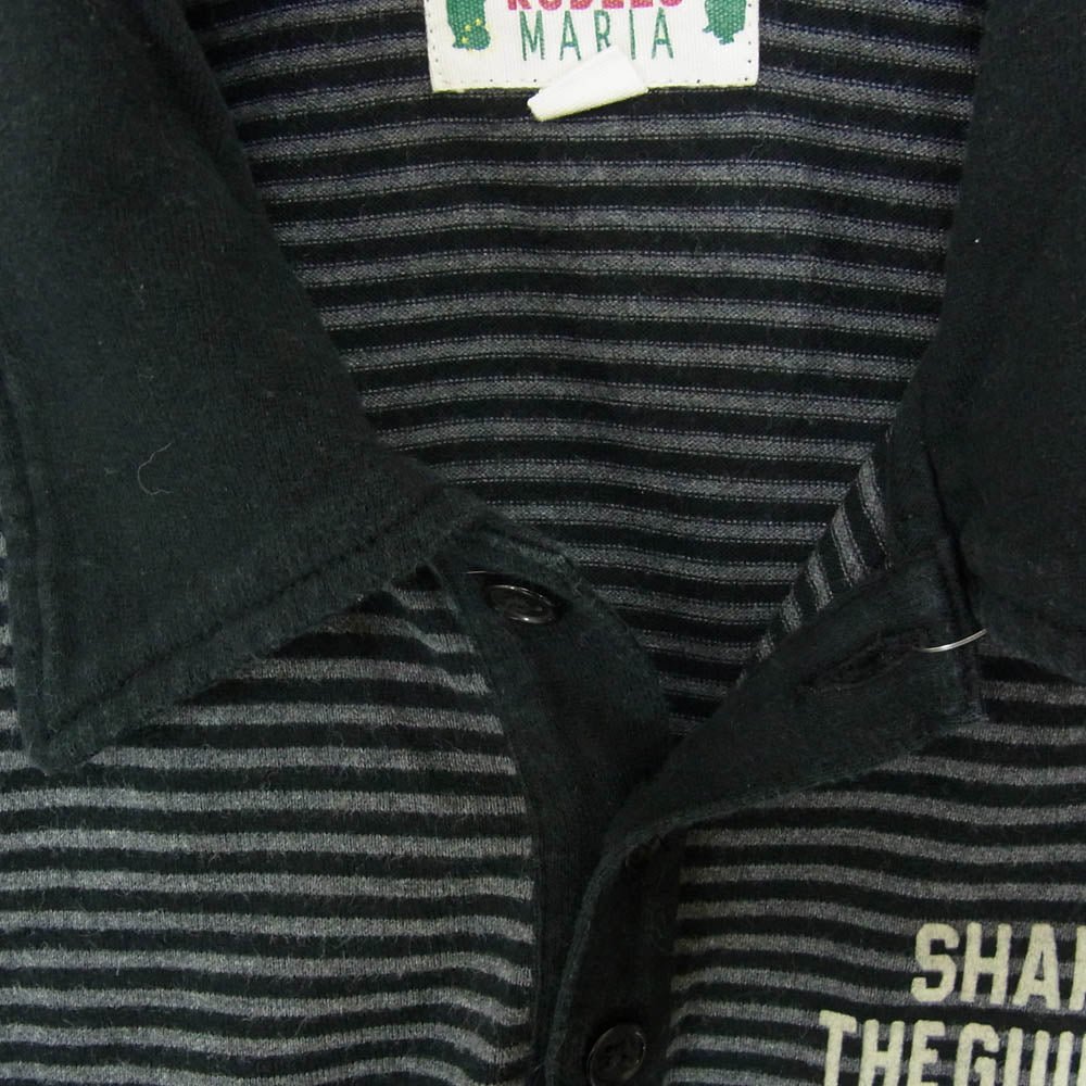 WACKO MARIA ワコマリア ロゴフロッキープリント ボーダー 七分袖 ポロシャツ ブラック系 S【中古】