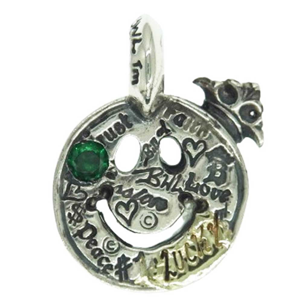 BILL WALL LEATHER ビルウォールレザー キングスロード購入証明書付属 Graffiti Happy Face w/Crown and Stone Gold Solder グラフィティーハッピーフェイスチャーム w/クラウン&ストーン ペンダントトップ シルバー系【中古】