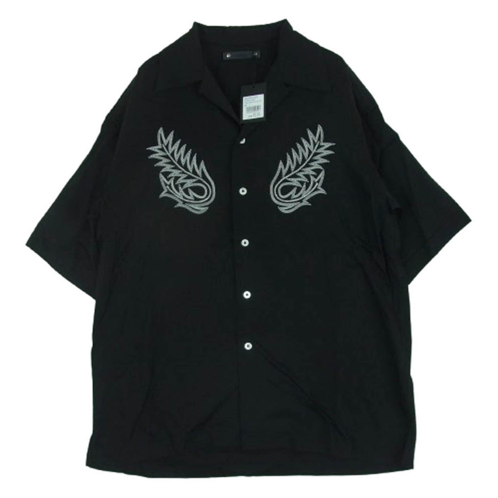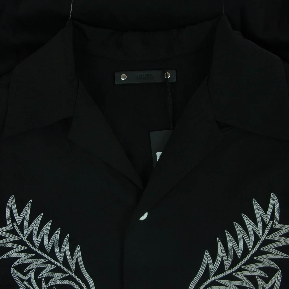 MINEDENIM マインデニム 2504-5002 Cu.Denim Boot Crest Open Collar SH 4ozライトオンス デニム キュプラ糸 ウエスタンブーツ柄 刺繍 オープンカラー 半袖 シャツ ブラック系 1【極上美品】【中古】