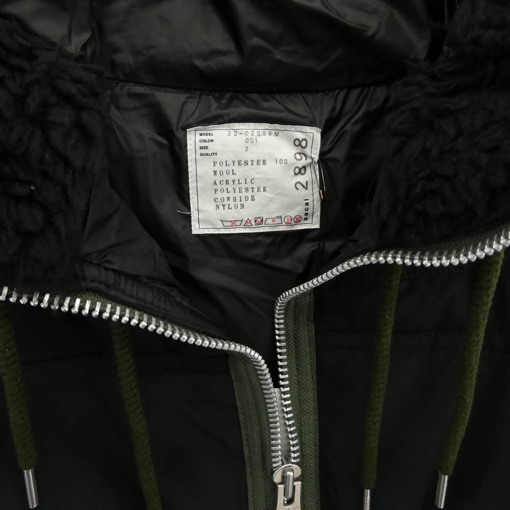 Sacai サカイ 22AW 22-02898M padded blouson パデッド ブルゾン 中綿 ジャケット フーデッド コート ブラック系 2【中古】