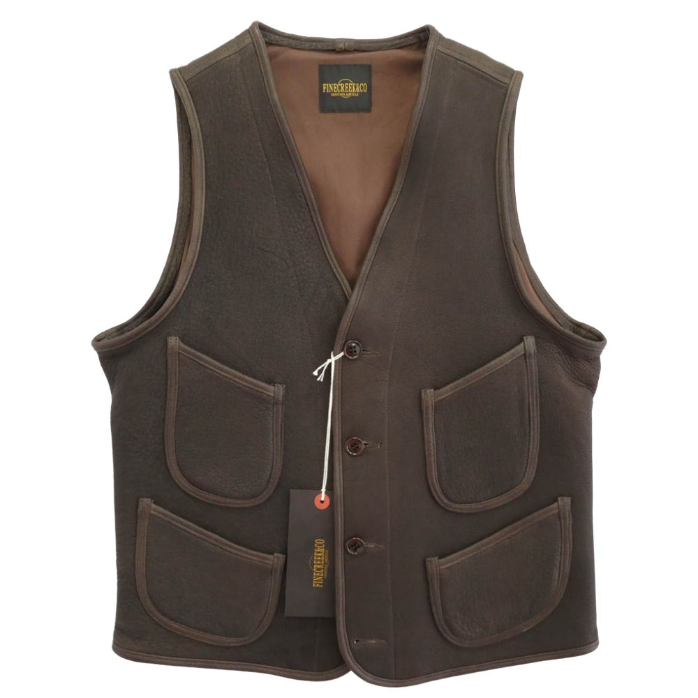 FINE CREEK LEATHERS ファインクリークレザー ACVE004 FINE CREEK & Co Jefferson Deer ジェファーソン ディアスキン フルベジタブルタンニン レザー ベスト ブラウン系 36【新古品】【未使用】【中古】