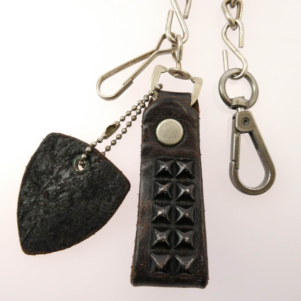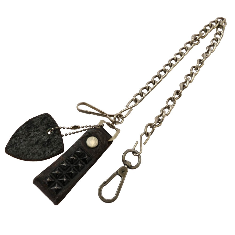 HTC エイチティーシー レザー ピラミッド スタッズ ウォレット チェーン ダークブラウン系【中古】