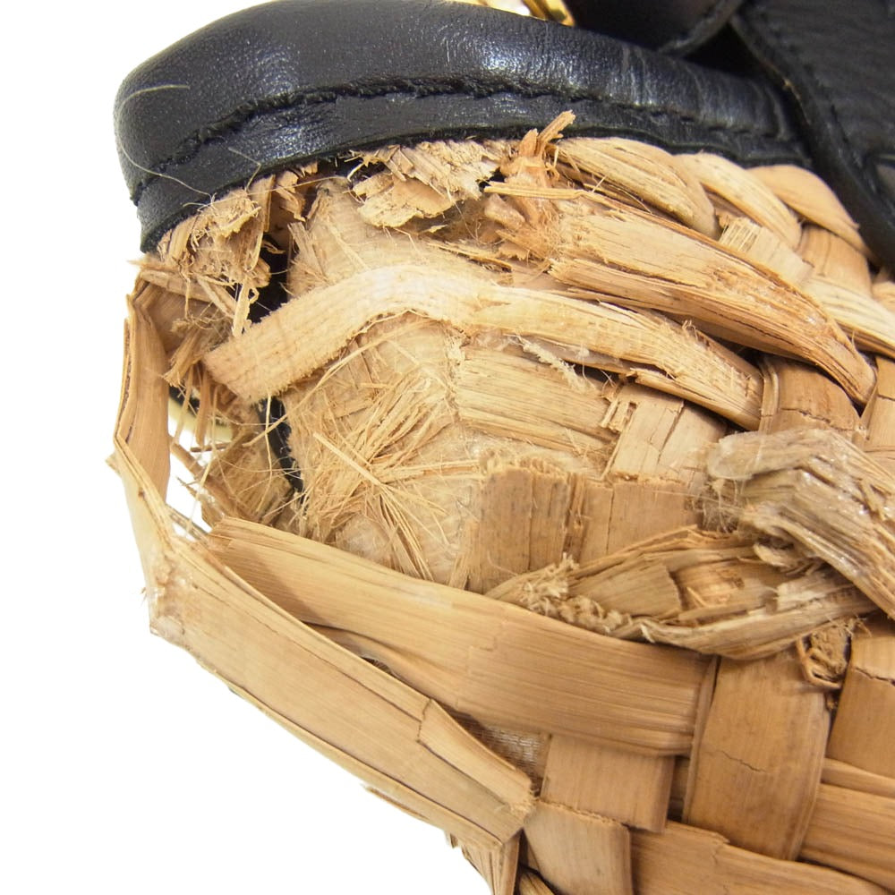 Sacai サカイ 20SS woven style logo patch bucket bag ロゴレザーパッチ かごバッグ 2WAY マルシェ バッグ ブラック系【中古】