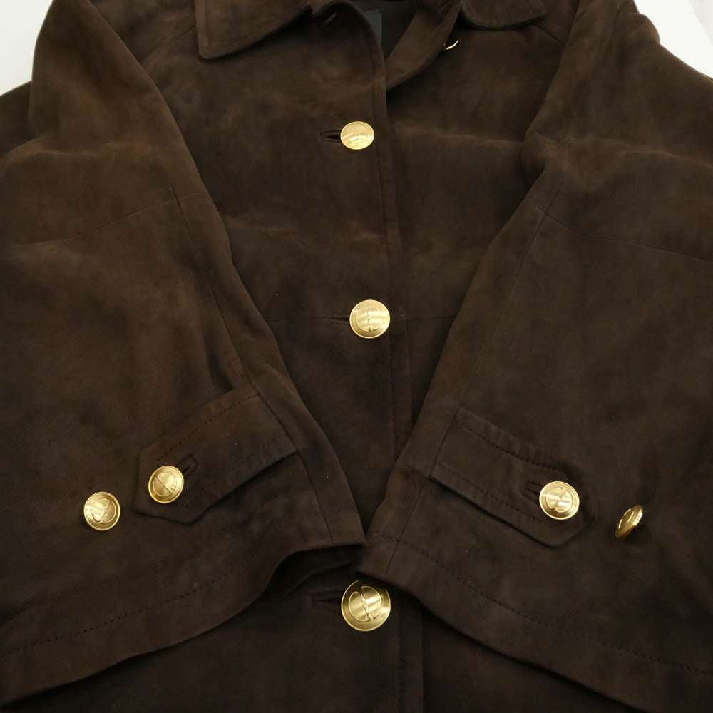 GUCCI グッチ 239-1110-7513 シープスキン スエード レザー ロングコート ジャケット ブラウン系 44【中古】