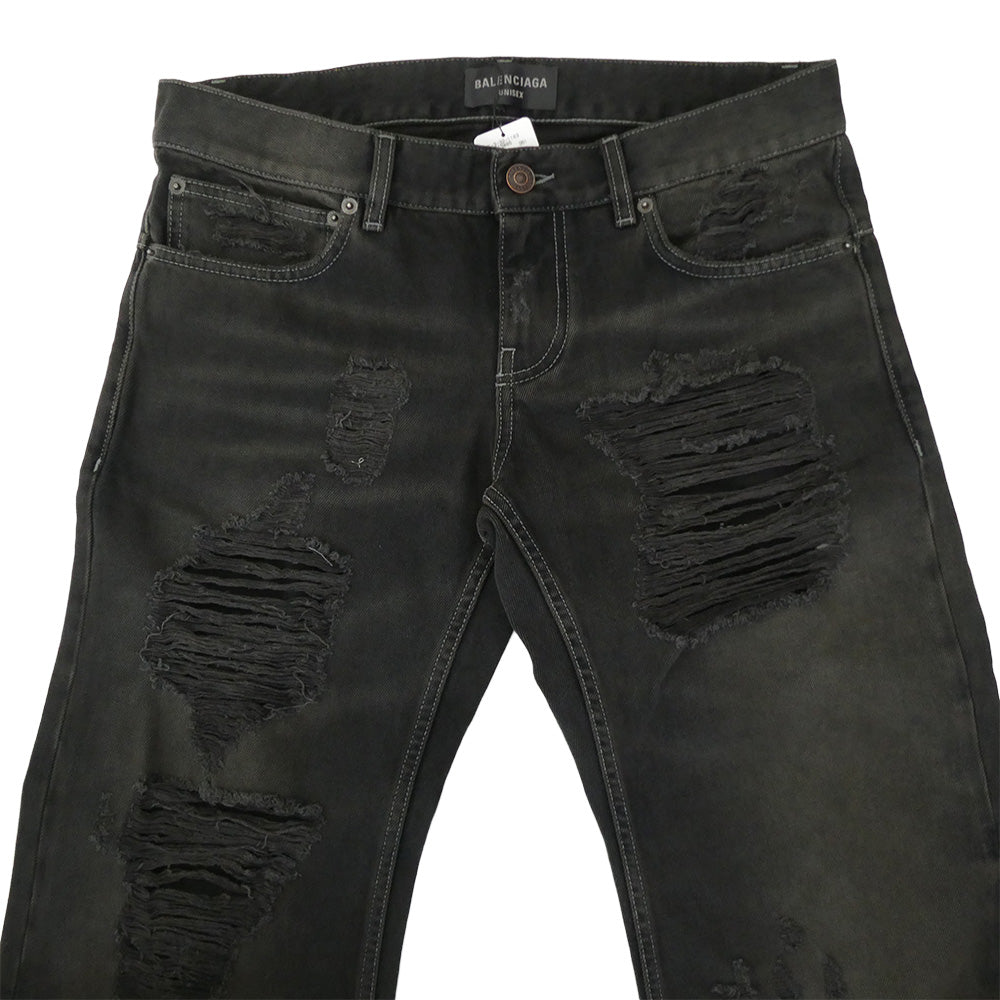 BALENCIAGA バレンシアガ 833430 TSW85 ダメージ クラッシュ デストロイ 加工 ローライズ ブラック デニム パンツ ブラック系 S【美品】【中古】