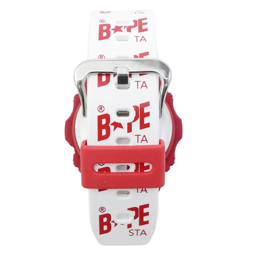 A BATHING APE アベイシングエイプ DW-5750E × CASIO G-SHOCK カシオ ジーショック 丸型 カラーカモ レッドカモ ウオッチ 腕時計 ホワイト系 レッド系【美品】【中古】