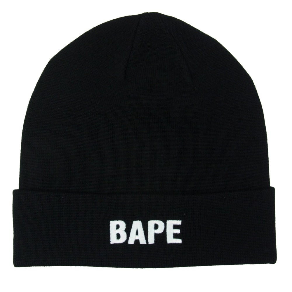 A BATHING APE アベイシングエイプ 001GDM201002H BAPE ロゴ刺繍 ビーニー ニット キャップ 帽子 ブラック系 F【新古品】【未使用】【中古】